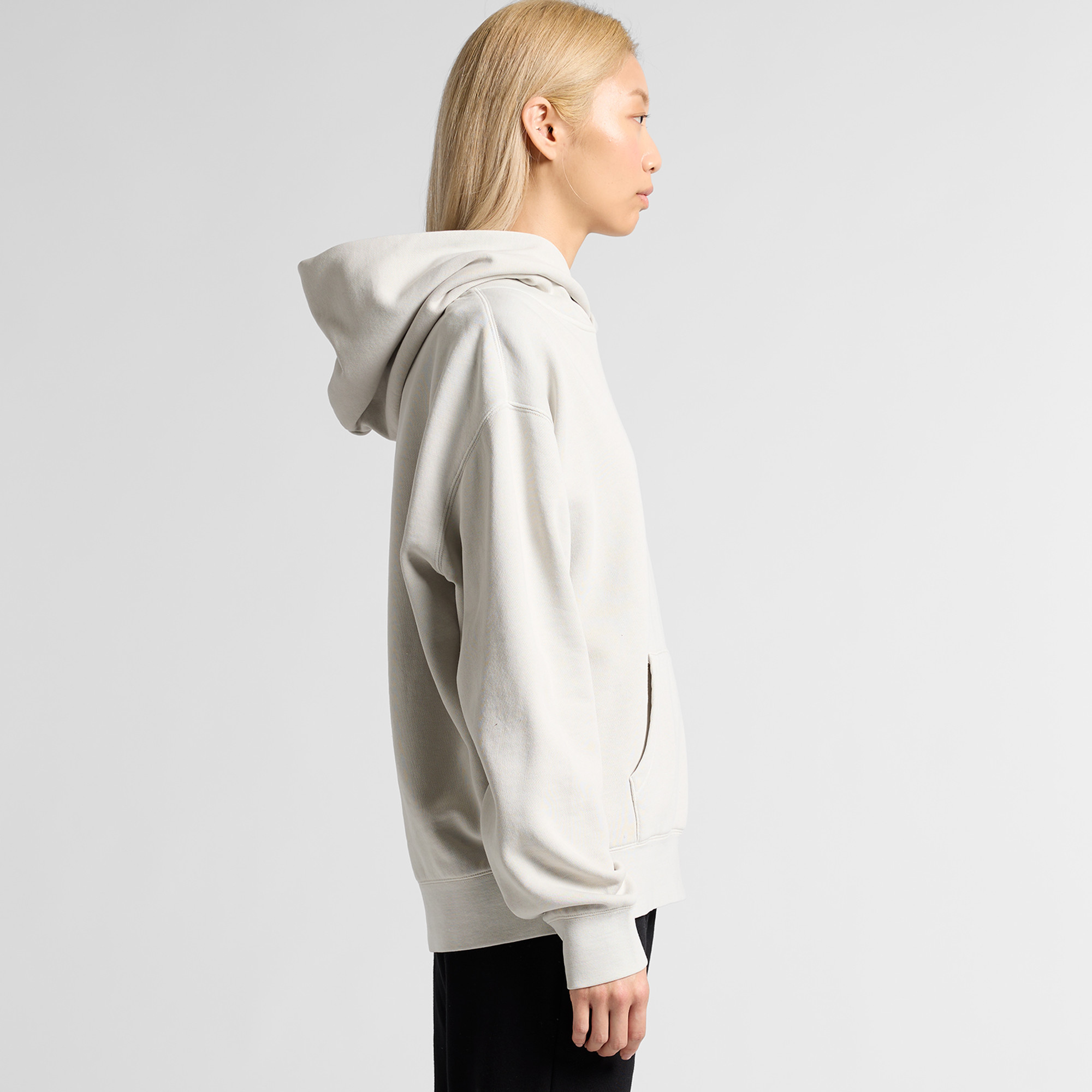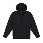 Pullover hood, drop shoulder, kangaroo pocket, self-fabric lined hood, no drawcord, garment dyed, sleeve cuff ribbing