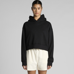 Pullover hood, drop shoulder, cropped full length, self-fabric lined hood, no drawcord, sleeve cuff ribbing