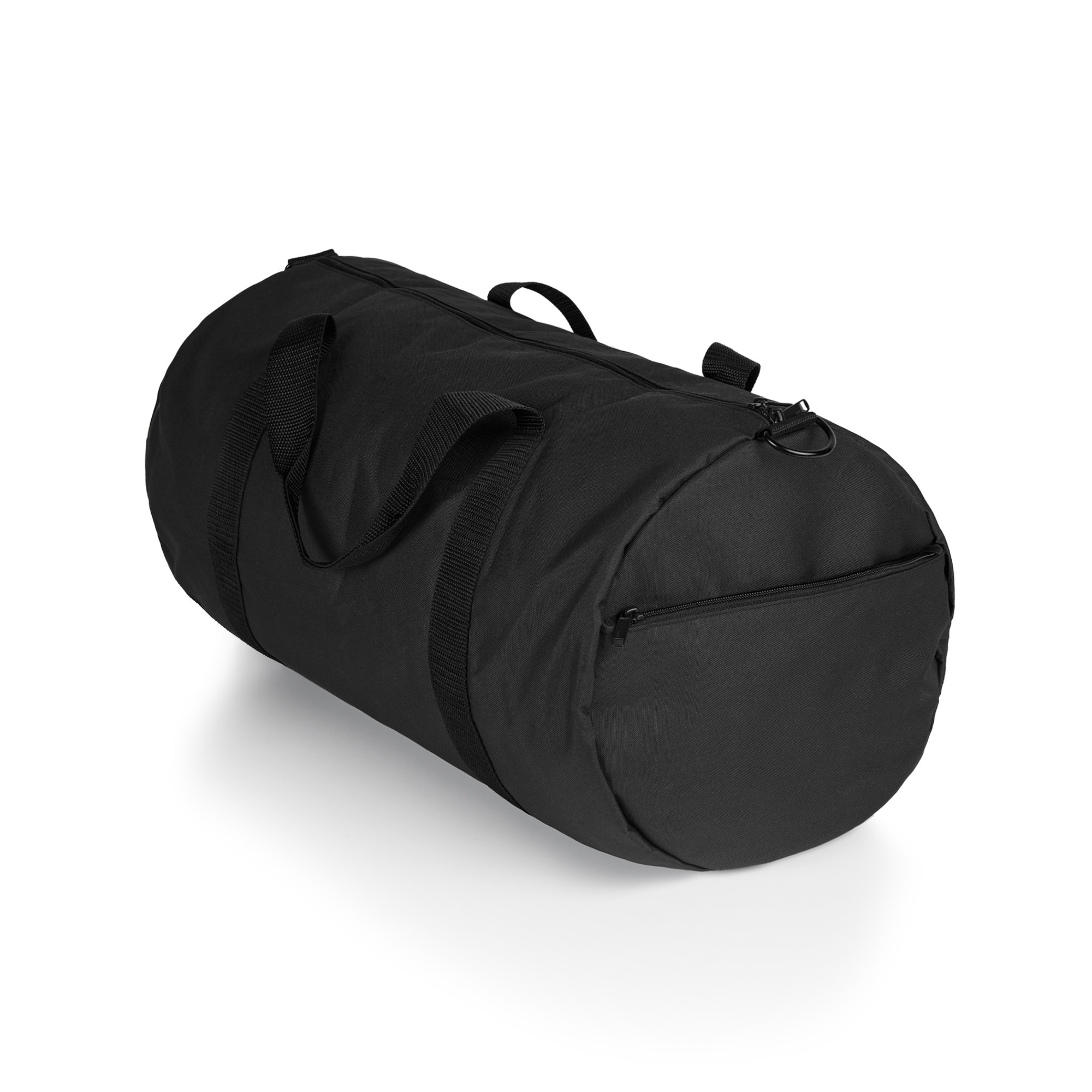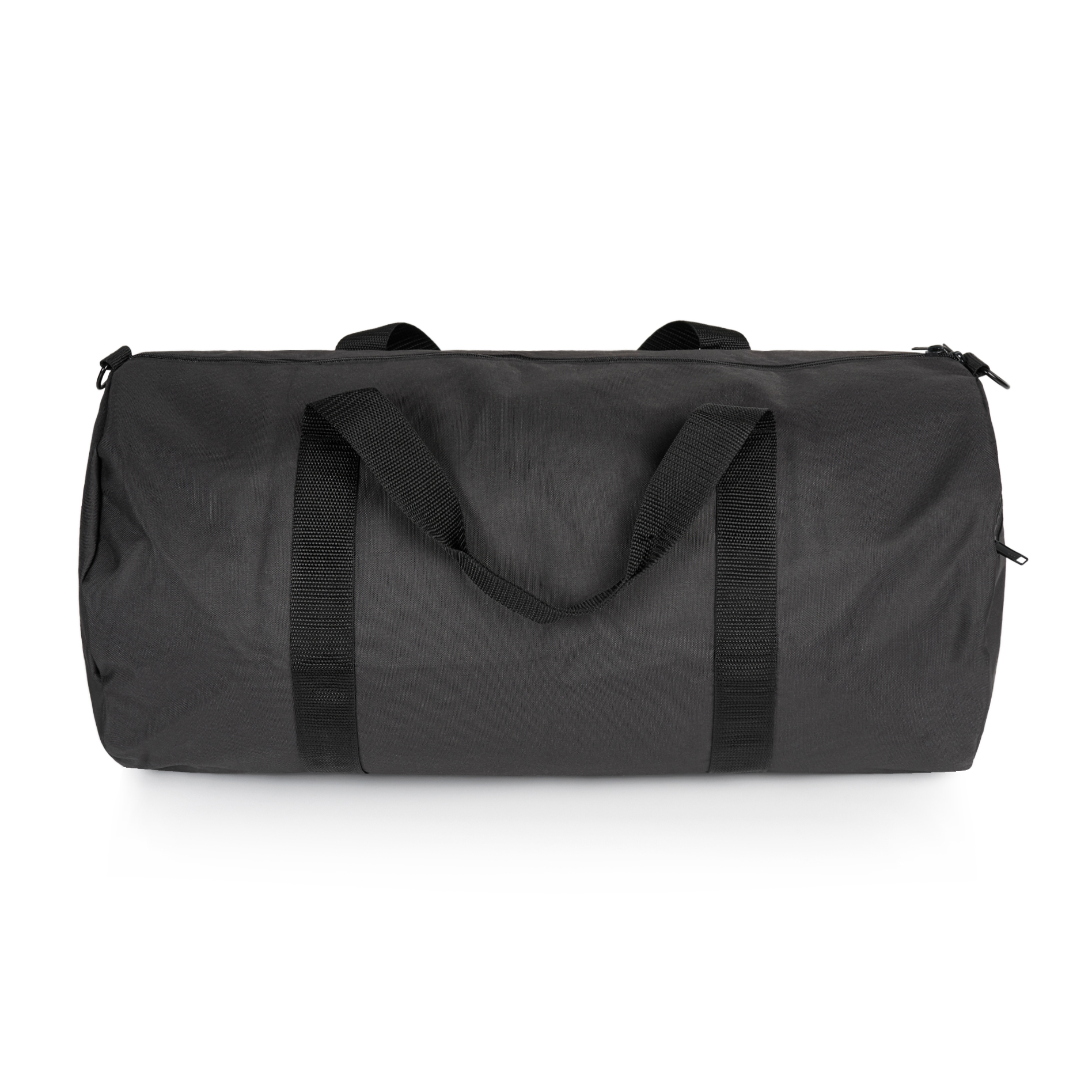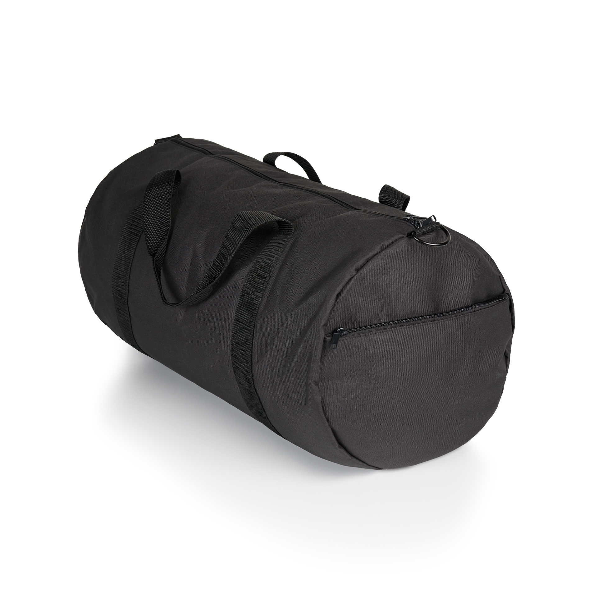 Cylinder duffel, large main compartment, YKK tonal nylon zip, reinforced handles, adjustable shoulder strap, YKK zip