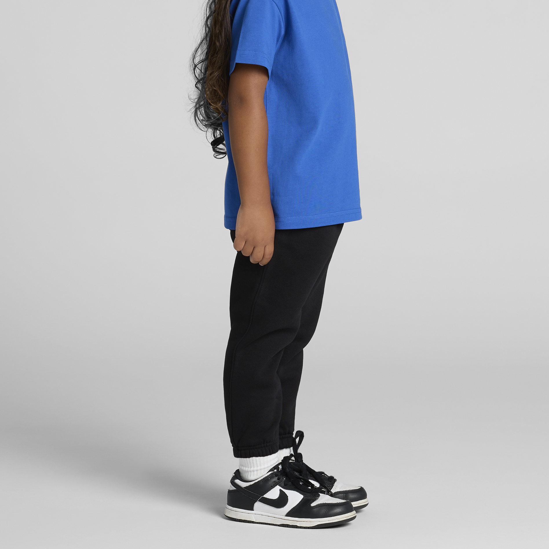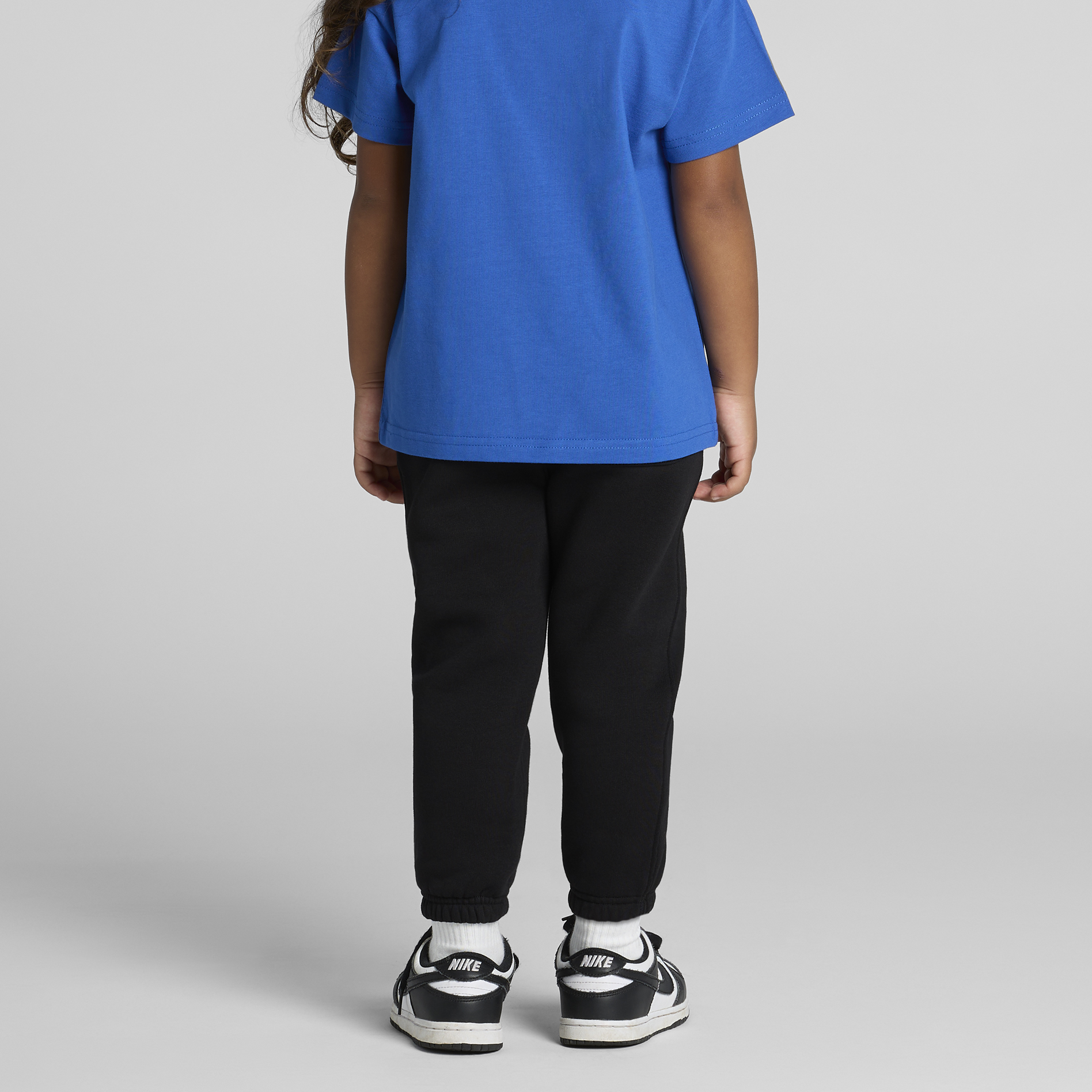 Self-fabric elasticated waistband, cuff less hems, tonal internal drawcord, 2 side pockets, single pocket at back