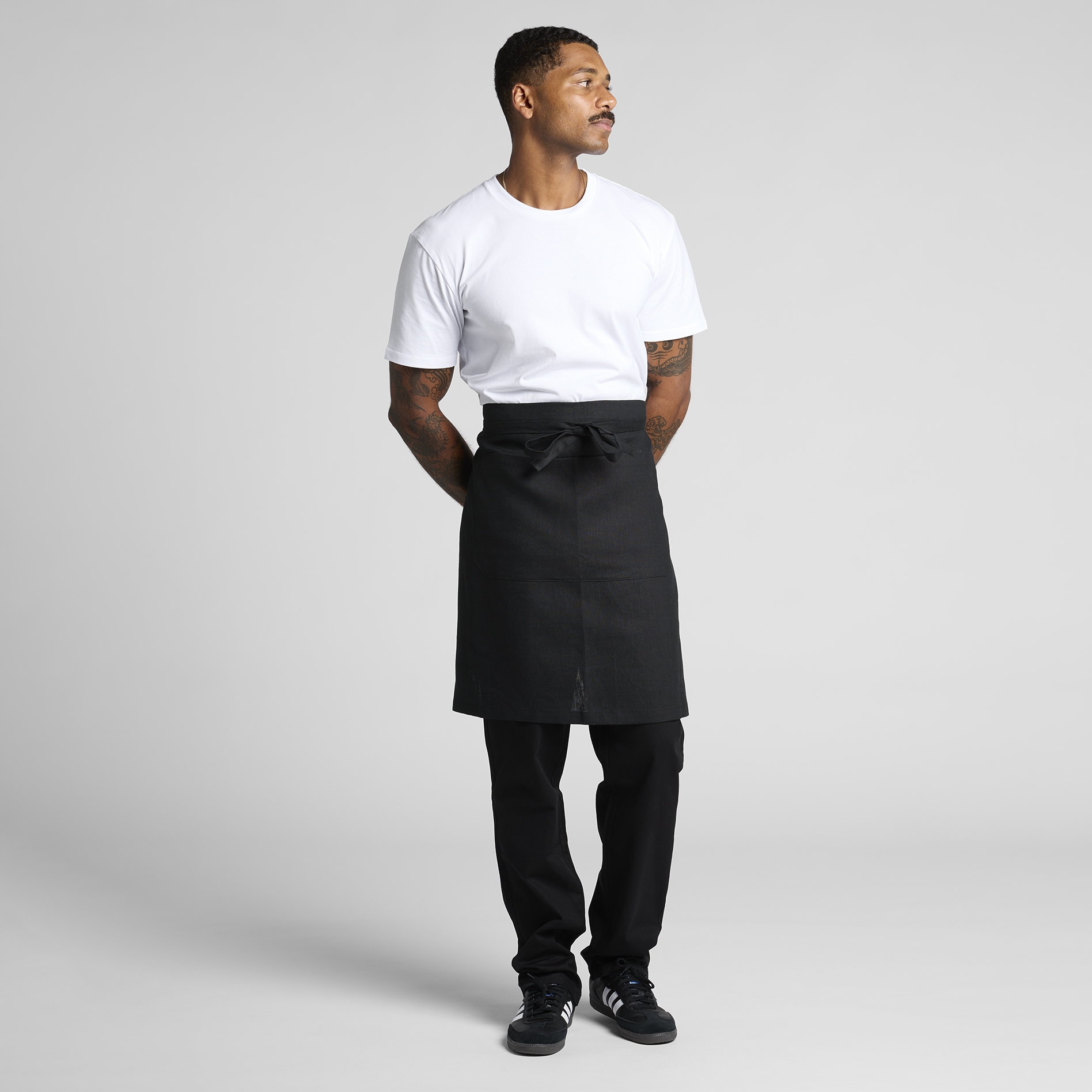 Chino pants, 2 side pockets, jet pockets at back, elasticated waistband, internal tonal drawcord, preshrunk to minimise shrinkage