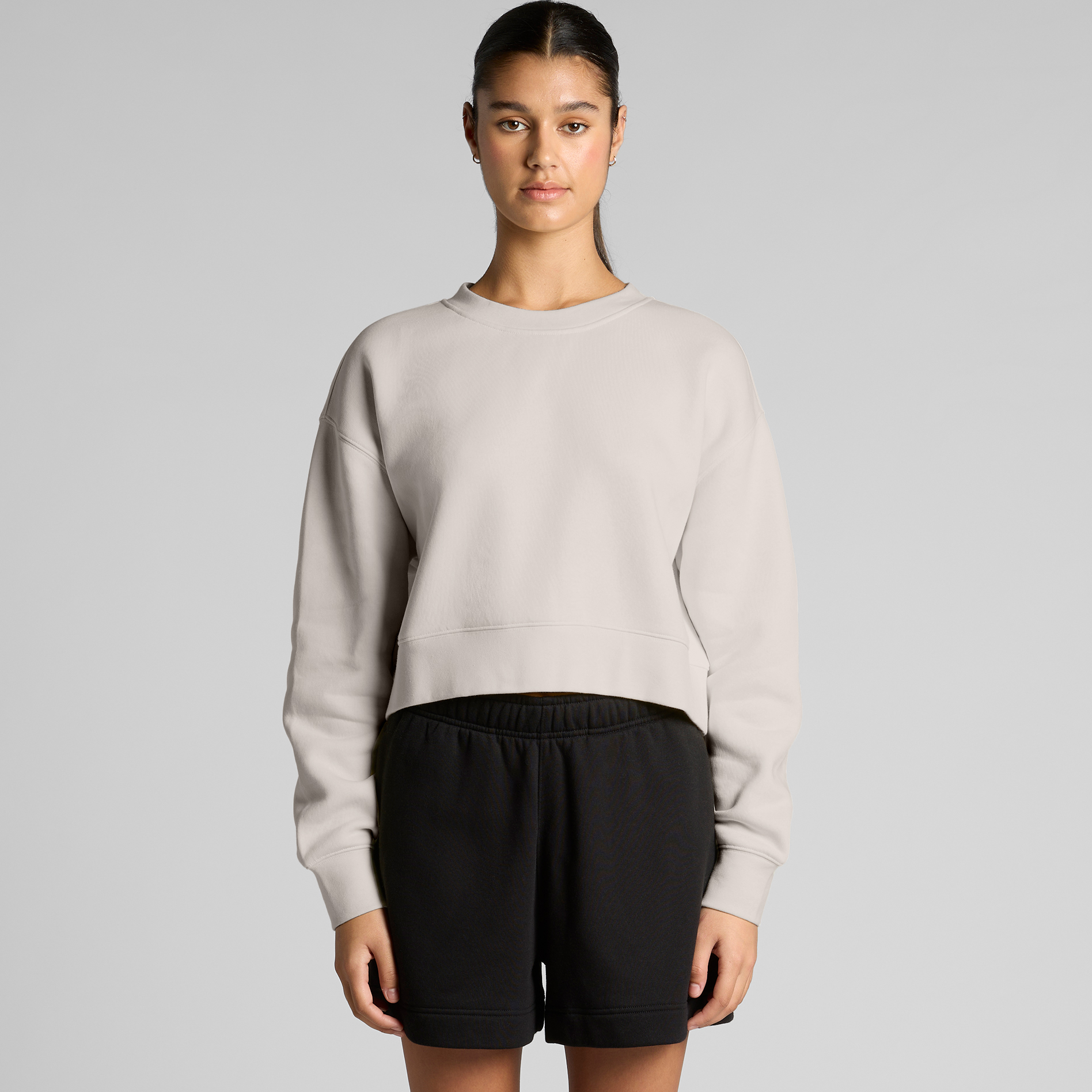 Pullover crew, drop shoulder, cropped full length, crew neck, sleeve cuff and hem ribbing